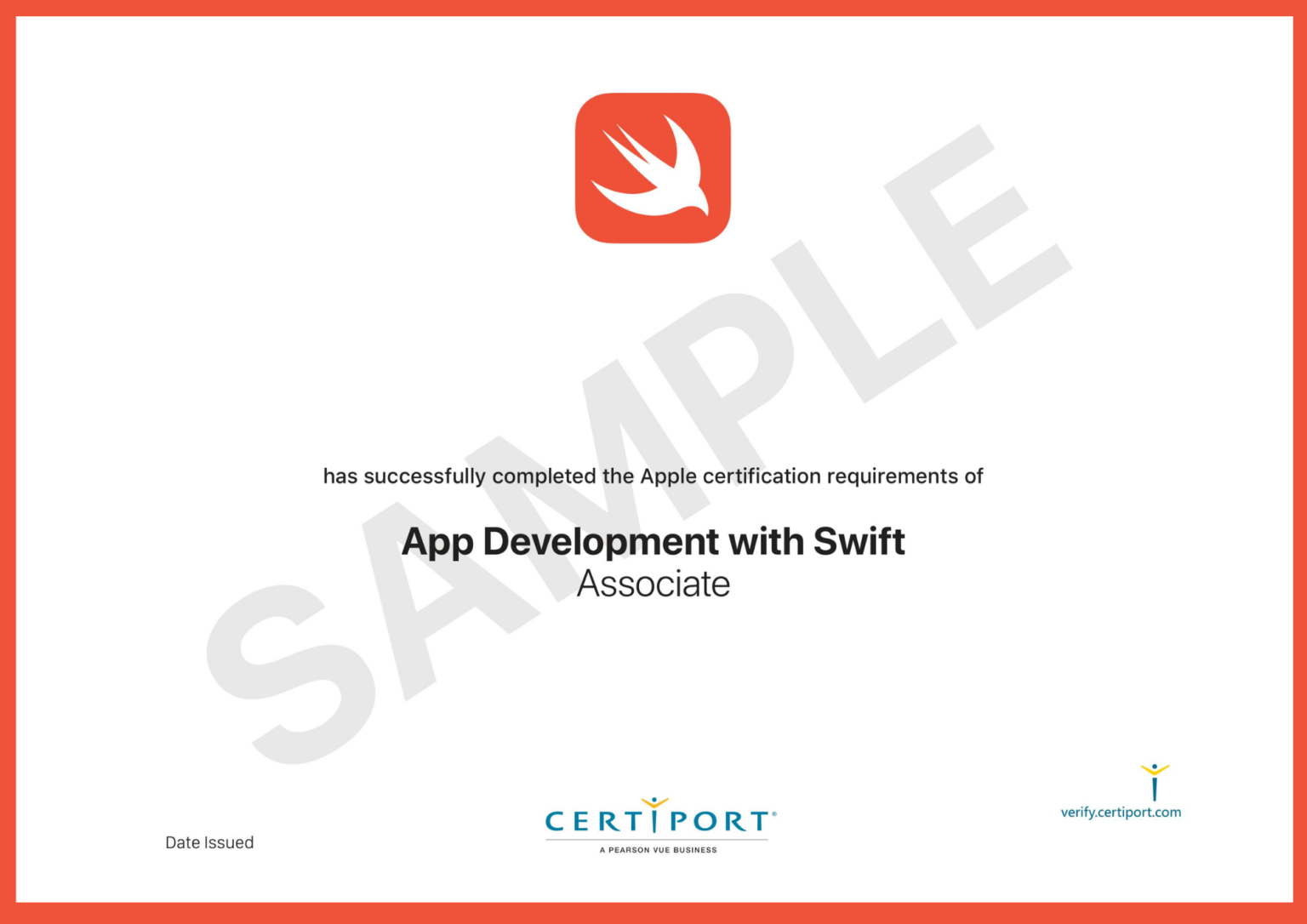 App Development with Swift certifications recognize students for their knowledge of Swift, Xcode, and app development tools. Students are expected to have completed at least 150 hours of instructional time before taking the certification exam. Students who pass the certification exam will earn a digital badge they can share in a resume, portfolio, email, or in online professional networks.